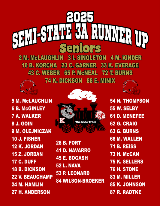 2025 Knox Football Semi-State - T-shirt, Long Sleeve, or Hoodie - Red - Optional Roster on Back Print