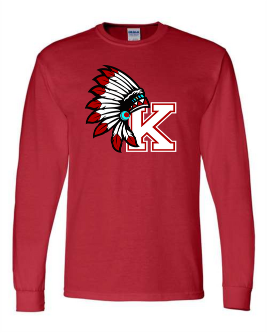 Knox Redskins Headdress K design - T-Shirt, Long Sleeve, or Hoodie - Red