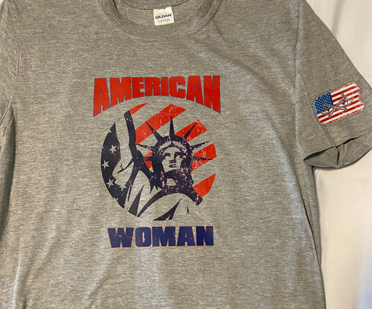American Woman USA Lady Liberty Custom Shirt - Grey - Adult and Youth Sizes